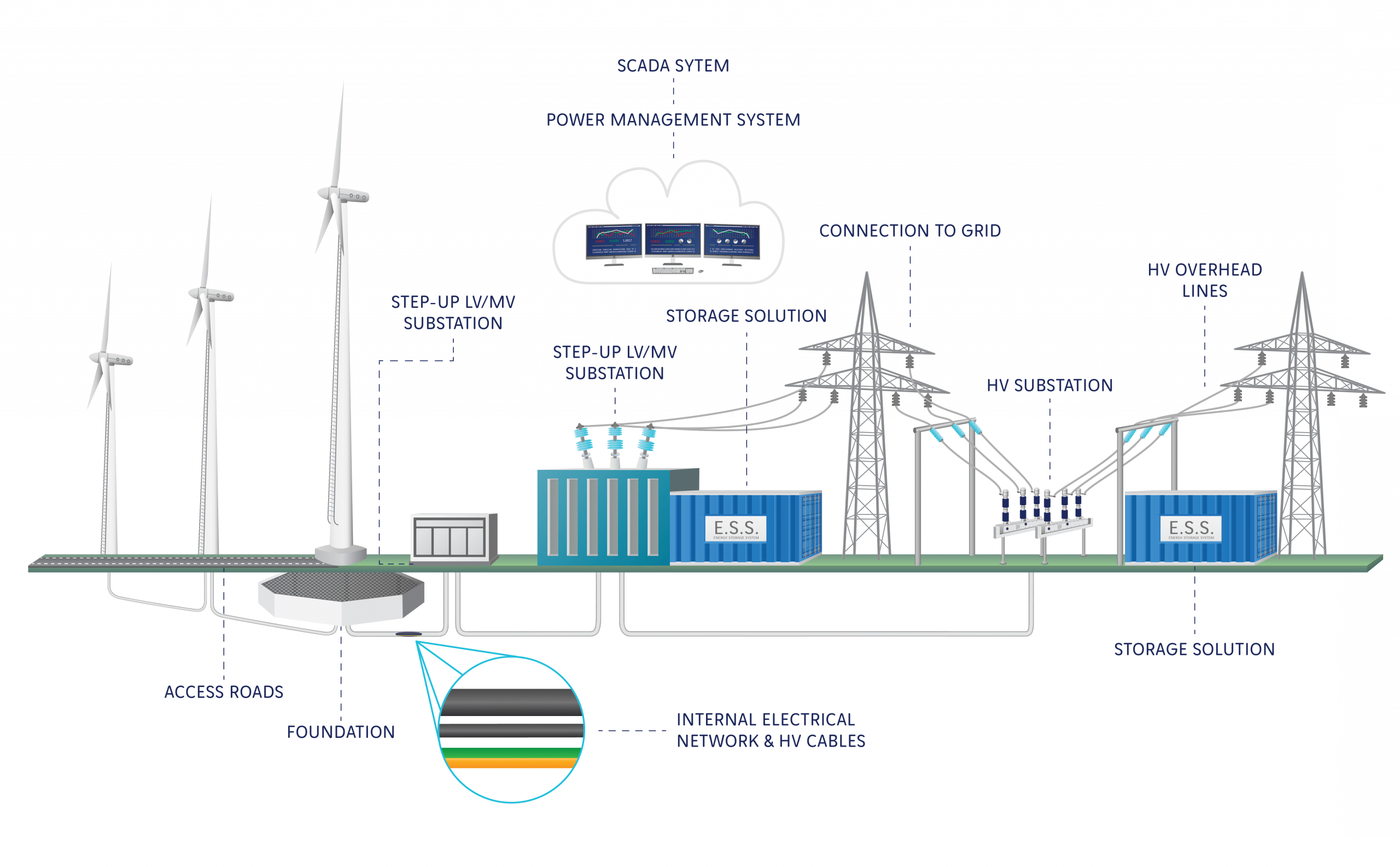 On top of its historical T&D activity, Omexom’s know-how of utilities and independent power producers’ contractual requirements are key to ensure the success of your wind project. Moreover, with its strong local network. Omexom has full knowledge of local grid requirements and practices.